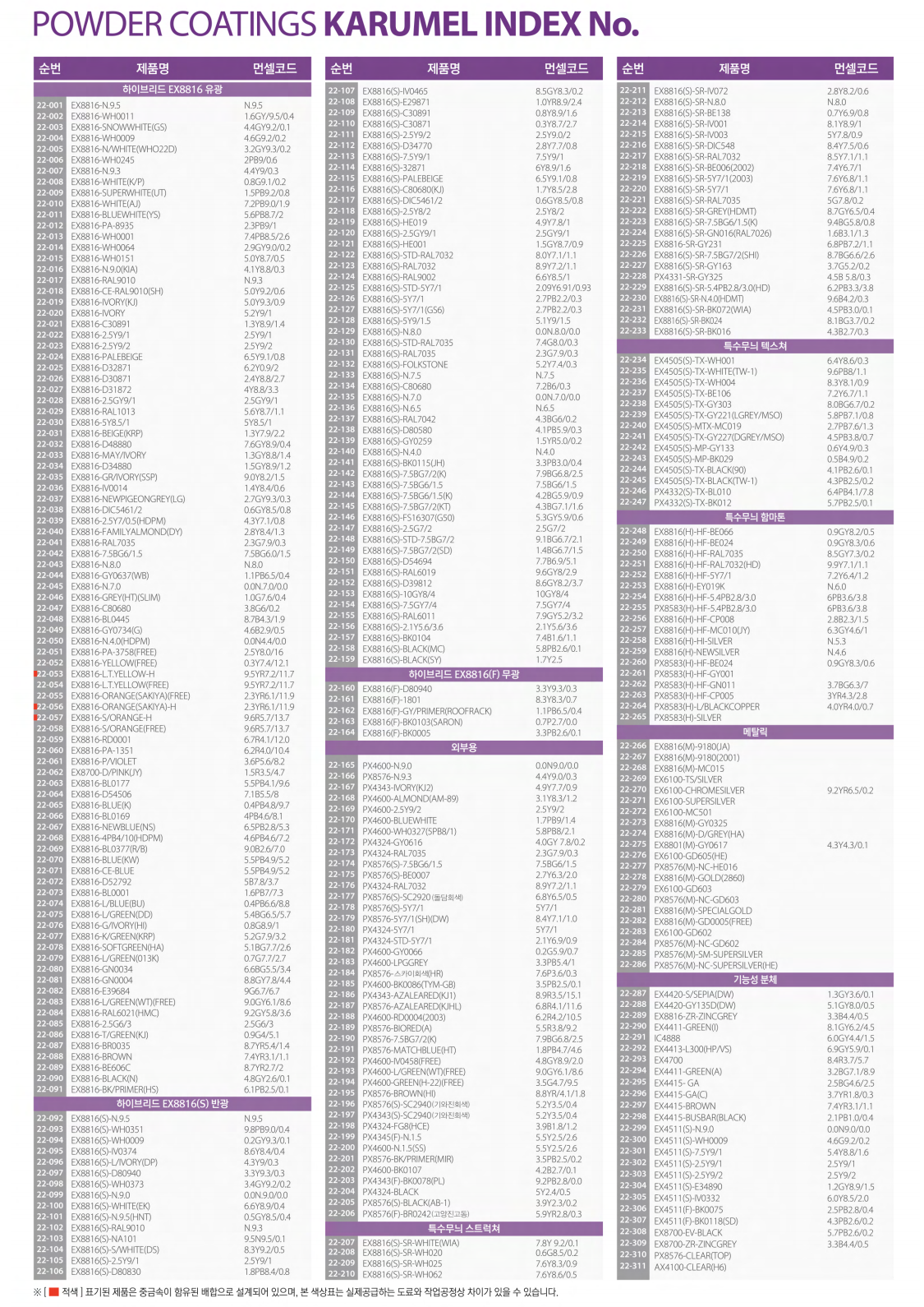 | 분체도료 색상표 |
