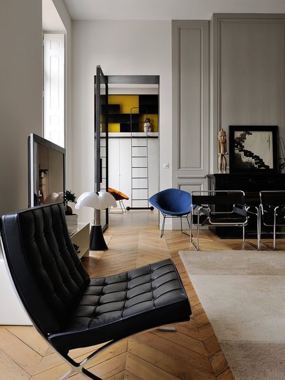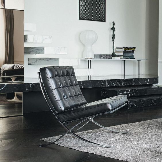 바르셀로나 의자는 바로 이런 현대식 건물 속 넓고 단순하며 탁 트인 로비에 가장 잘 어울리는 의자다.